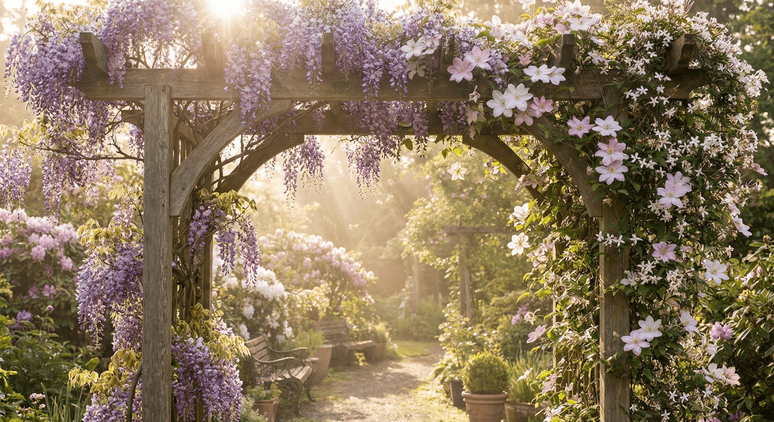 Climbing plants are the garden’s great multipliers — they take what you already have and make it look three times more interesting. A plain wooden fence covered in sweet peas becomes a living curtain of fragrance. A bare brick wall softened by a climbing hydrangea develops a character no amount of paint could achieve. Whether you have a grand pergola or a simple fence post, there’s a climber for every situation. In this comprehensive essential guide, we’ll cover everything you need to know.